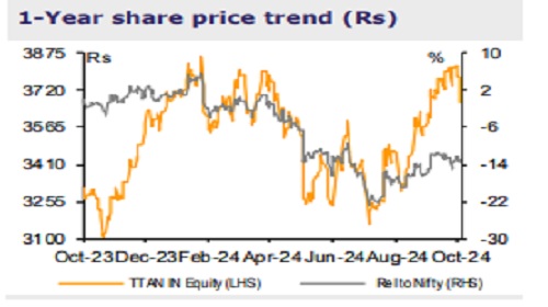 As per its Q2 business update, TTAN has exceeded our growth expectations across most business segments. Importantly, jewelry has reported a significant improvement with 26% growth in Q2 vs our 15% expectation and 9% growth in Q1. LTL growth has also inched upwards to the mid-teens vs 3% in Q1, likely triggered by a big 900bps duty cut. Revenue mix is likely a tad weaker with lowdouble-digits growth in the high-margin studded segment (vs ~25% overall growth). However, TTAN is comfortably placed to meet its ~12% jewelry EBIT margin guidance in FY25, in our view. Q2 outperformance should address investor concerns around potential moderation in growth for TTAN and drive a 4-5% increase in our earnings estimates. We recommend BUY with revised TP of Rs4,400/share (based on 65x Sep-26E EPS).