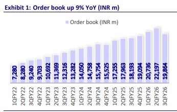 TRIV reported strong export revenues in 3QFY26, up 54% YoY to INR4b, reflecting the execution of prior orders, even as export order inflow declined 40% YoY to INR2b. The export order book also declined 20% YoY to INR9b, driven by delays in finalizations. With easing trade?related uncertainty, management highlighted improving traction in newer applications such as geothermal and waste?to? energy. TRIV expects inflows to come from product, aftermarket, and refurbishment. We expect export inflows to grow 20%/22% in FY27/FY28.