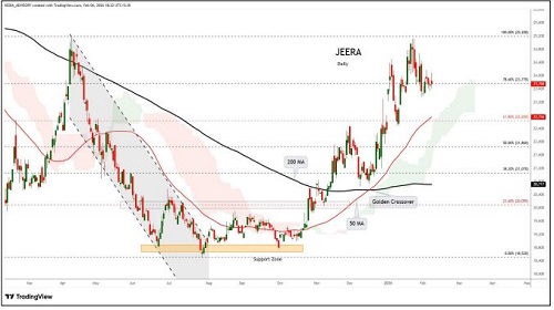 Jeera trading range for the day is 23350-24290.