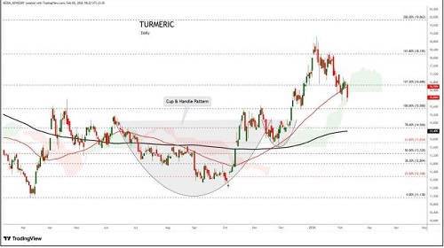 Turmeric trading range for the day is 15280-17184. Turmeric dropped amid increase in acreage due to favourable rains during the current sowing season. India’s turmeric crop for the 2026 harvest is shaping up with higher acreage but only moderate supply growth. However downside seen limited as arrivals remain below normal and good domestic and international demand. In Nizamabad, a major spot market, the price ended at 16055.6 Rupees dropped by -0.54 percent.