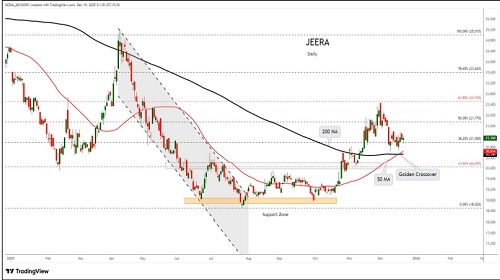Jeera trading range for the day is 21270-22310.