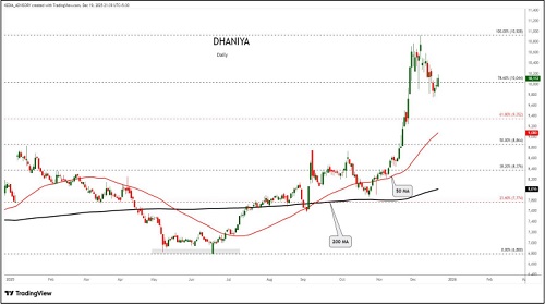 Dhaniya trading range for the day is 10138-10698.