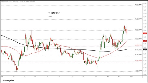 Turmeric trading range for the day is 16148-17128.