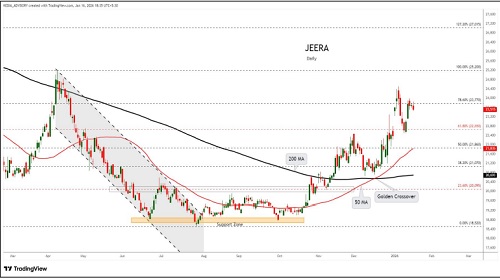 Jeera trading range for the day is 23710-25550.