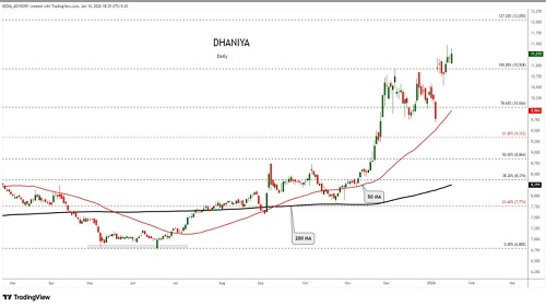 Dhaniya trading range for the day is 11620-12228.