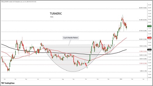 Turmeric trading range for the day is 17466-18342.