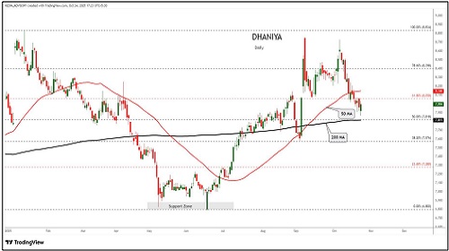 Dhaniya trading range for the day is 7998-8326.
