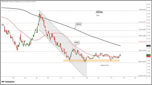 Jeera trading range for the day is 19720-20880.