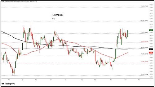 Buy Turmeric DEC @ 15200 SL 15000 TGT 15500-15700. NCDEX - Kedia Advisory