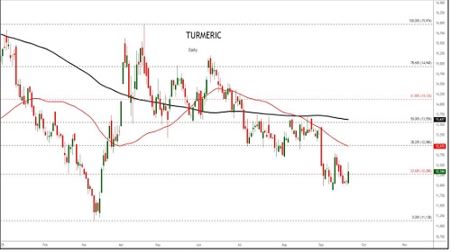 Turmeric gains as recent rainfall has caused damage to standing turmeric crops in major growing regions.