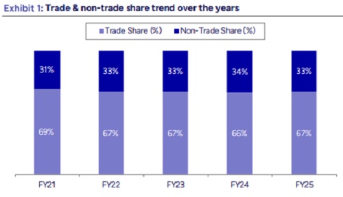 * Demand outlook improving sequentially: Along with GoI’s long term efforts in direct tax reduction and GST rationalization, seasonally stronger period for construction activities is expected to lead to an improvement in cement demand. Rural housing and commercial demand remain strong, while urban centers remain steady although infra execution continues to lag numerous announcements as government spending is skewed toward large strategic projects. Road activity has begun stabilizing from Sep’25 as per GoI data. Gap between non-trade and trade prices has increased as the former have fallen in recent months. Trade prices have been largely stable with limited decline in East and South regions. We expect cement prices to recover from Q4FY26 as demand improves further aided by infrastructure spending.