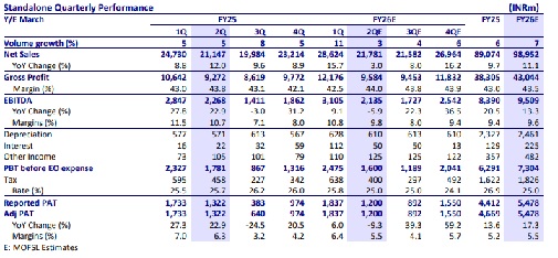 * We expect 3% revenue growth and 3% volume growth YoY, impacted by a weak summer and extended monsoon.