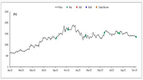 Valuation & Recommendation: Wabag’s closing order book stood at ~Rs 16,020 Cr at the end of Q2FY26. We have rolled forward our estimates to FY28 earnings, and our FY26E/FY27E estimates, revenue projections remain unchanged. We view the order book as robust, reinforcing our positive long-term outlook. We now value the stock at 21x Sep’27E earnings, with a target price of Rs 1,930/share, implying an upside of 42% from the CMP. Accordingly, we maintain our BUY rating on the stock.