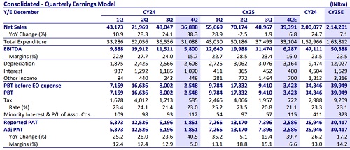* We expect EBITDA margin to expand by ~20bps YoY to 16% in 4QCY25.