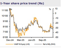 We maintain BUY on Voltamp Transformers (VAMP) while cutting our TP by ~12% to Rs10,000 (from Rs11,350 earlier), valuing the stock at 25x FY28E EPS. VAMP’s strong market position (15% share in the industrial segment) stems from its design and manufacturing depth, along with a broad product portfolio that serves a diversified customer base – with private clients contributing ~85% of revenue. With its established track record, we believe the company is strategically placed to benefit from a multi-year growth cycle supported by private capex revival and the GoI’s PLI-driven manufacturing push. The current opportunities across solar energy, railway capex, EV charging infrastructure, green hydrogen, and data centers further widen VAMP’s addressable market. While we expect a high double-digit revenue growth led by capacity expansion and a lean balance sheet, we trim our margin estimates due to rising industry supply from planned capacity additions by several players.
