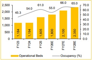 Near-term Triggers: Operationalisation of two new facilities in July ’25: New Delhi (300+ beds) and Faridabad (400 beds).