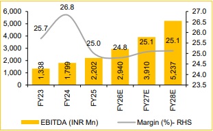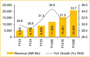 Revenue expected to grow at ~33% CAGR (FY25-28E)