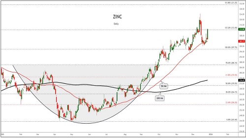 Zinc inventories in warehouses monitored by the Shanghai Futures Exchange dropped 4.3% from December 26.