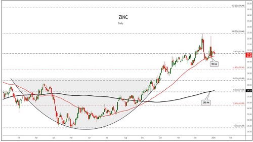 Zinc inventories dropped 4.3% from December 26, signaling further tightening.