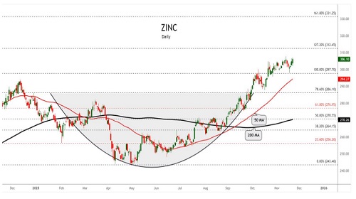 Zinc gains supported by persistently tight LME inventories and a mild rebound in physical premiums.