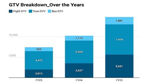 This is the total value of all bookings made on Ixigo’s platform whether for trains, flights, or buses. It reflects how much customers are spending through the app.