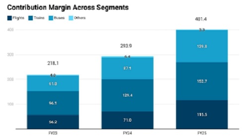 The bus business can be seen as a high-margin complement for Ixigo. Powered by the AbhiBus acquisition, it has emerged as one of the company’s most profitable segments. Traditionally, the bus category has been low-cost and highly price-sensitive. However, Ixigo’s leverage of AbhiBus’s direct integrations with private bus operators and state transport corporations has helped secure better inventory and pricing.