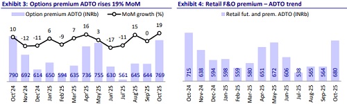 * Retail futures and premium ADTO witnessed a strong 20% MoM growth in Oct’25, while retail cash ADTO inched up 1% MoM.