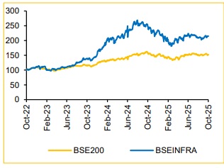 For Q2FY26E, cement demand remained weak across most regions in September 2025, impacted by rains and ongoing festive activities. Prices largely reflected GST-related adjustments, with companies passing on full benefits to customers. Western and Central markets remained stable, while Eastern markets remained weak due to adverse weather. In the South, demand showed a gradual recovery in some markets, while other areas continued to witness weak offtake. Northern markets improved modestly, but a meaningful pickup is expected in H2FY26E. The all-India average selling price declined by ~INR 25 MoM to ~INR 330/bag, with dealers across regions anticipating stronger demand only after the festival season.