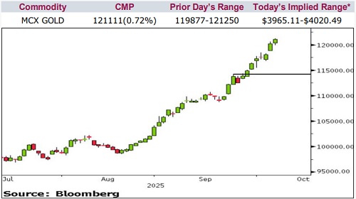 * Comex Gold climbed nearly 1% in the previous session, supported by renewed safe-haven demand amid the ongoing U.S. government shutdown, escalating geopolitical tensions, and a softer Dollar Index. Spot prices inched closer to the historic $4,000 mark for the first time. The near-term trend remains positive as long as the $3,900 level acts as support