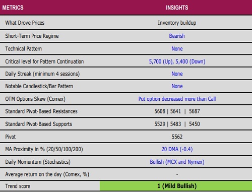 * Nymex Natural Gas declined sharply by nearly 4% in the last session after a strong rally earlier in the week. Traders now await the U.S. natural gas inventory data due later today, which could set the tone for the next directional move if the numbers deviate from expectations