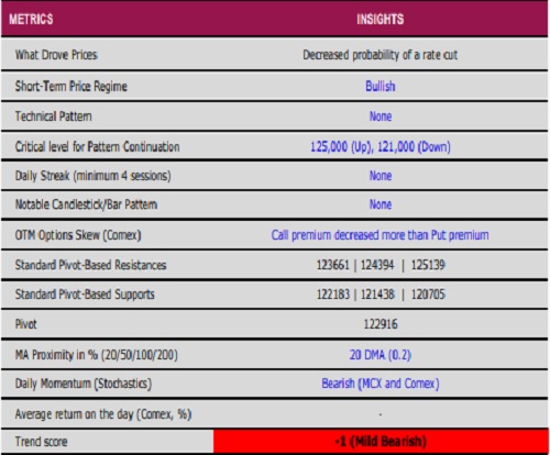 * Comex Gold prices fell nearly 1% in the last session, extending their losing streak for three days in a row. Bullion sentiment was dampened due to a stronger dollar and reduced expectations of a U.S. interest rate cut next month, as investors awaited delayed economic data this week that could offer clues on the Federal Reserve's policy outlook