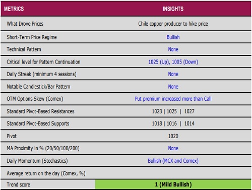 * Comex Copper moved in a narrow range amid thin participation, with US markets closed for Thanksgiving. The underlying tone stays firm, supported by ongoing supply concerns across key producing regions
