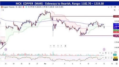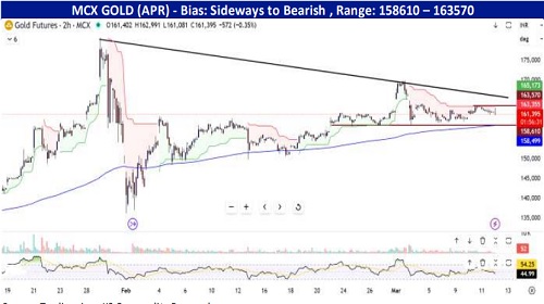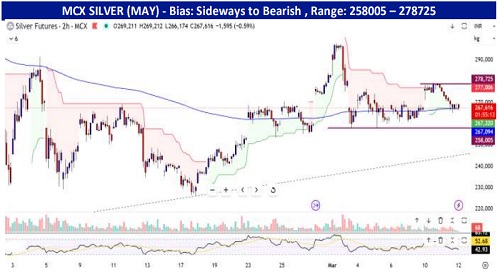 Bullion – Spot gold closed marginally lower at $5,176 per ounce, while silver declined 3% yesterday to close below $86, pressured by a stronger U.S. dollar. The dollar climbed to 99.3 as escalating tensions in the West Asia supported safe-haven demand for the U.S. currency. While, surging oil prices heightened inflation concerns, reducing expectations for near-term interest rate cuts by the Fed. Although gold typically benefits from geopolitical risks and inflationary pressures, elevated U.S. Treasury yields limited upside momentum. The latest U.S. inflation data was broadly in line with expectations, with CPI steady at 2.4% y/y in February and core inflation at 2.5%. Meanwhile, the U.S. 10-year Treasury yield climbed to around 4.22% as investors reacted to higher gasoline prices. Today, Gold is trading near $5,150 after rebounding from $5,125, as traders eye jobs and PCE numbers for fresh policy cues.