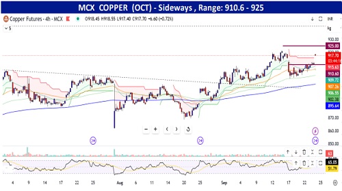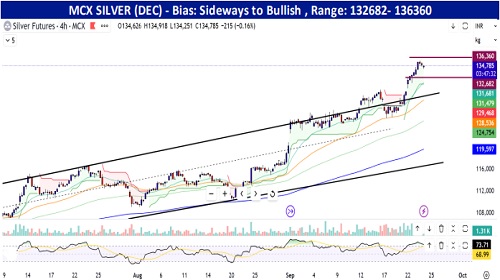 Base metals- Base metals closed Tuesday's session on a mixed note, with copper on the LME edging up to $9,974/ton, while on the MCX, all metals ended higher. The market remains alert to potential supply shocks as Freeport’s mine in Indonesia, stays offline following a mudflow incident. While prolonged disruptions could quickly tighten global supply, record first-half Chinese output continues to pressure margins at smelters that account for over half of global production. Aluminium also held steady, with global output averaging 202,500 tons a day in August, according to the IAI. Metals are expected to stay elevated amid ongoing global supply concerns, while Fed Chair Powell highlighted a “challenging” environment of persistent inflation and weak job growth, leaving room for potential policy easing.