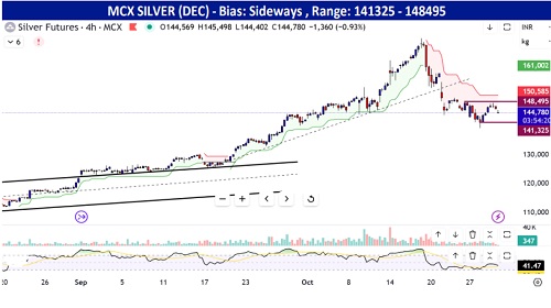 Bullion – Spot Gold extended its decline for the fourth straight session, settling below $3,930 an ounce after retreating from intraday highs near $4,030. The metal came under pressure as Fed Chair Jerome Powell signaled that a December rate cut is “not a foregone conclusion,” lifting the 10-year Treasury yield above 4% and driving the dollar index to a two-week high. While the Fed’s 25 bps reduction and plans to end balance sheet runoff in December add liquidity, Powell’s hawkish tone dampened sentiment. In contrast, spot silver rose over 1% to $47.50 per ounce, supported by easing global trade tensions following positive remarks from President Trump on U.S.–South Korea and China trade discussions. Today, Gold edged higher to trade above $3,935 after recent declines as traders assessed mixed Fed signals on rate cuts, with firm yields and dollar strength may cap broader gains.
