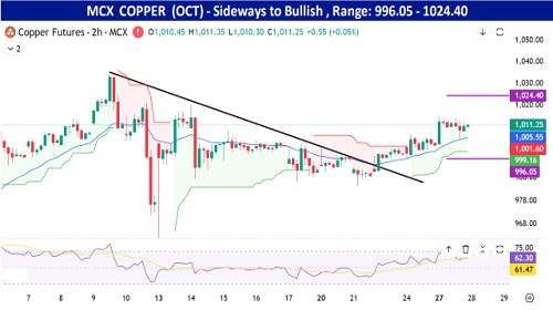 Base metals – Base metals opened the week on a firmer footing, with copper and zinc leading the advance across both the LME and MCX. Copper prices rallied past $11,000 per ton on the LME and breached ?1,000/kg on the MCX, buoyed by optimism over easing trade tensions between the US and China. Market sentiment improved after reports of constructive discussions ahead of the Trump-Xi meeting this week, with Washington stepping back from fresh tariff threats and Beijing agreeing to delay its rare earth export expansion. Softer US inflation data further fueled expectations of a Fed rate cut, adding to the positive momentum. Base metals are expected to trade range-bound with a slight upside bias, supported by ongoing supply concerns, while investors await the US Fed’s policy outcome for further direction.