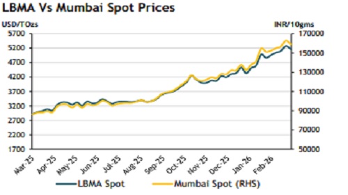Gold prices are likely to remain supported by steady central bank buying and firm ETF inflows, with ongoing geopolitical tensions in Middle East adding further support. However, a sharp rebound in the U.S. dollar and expectations of a potential shift in U.S. monetary policy under the new Fed Chair have tempered gains. Once the current phase of volatility eases, the market is expected to refocus on the structural factors that drives bullion demand in the longer period.