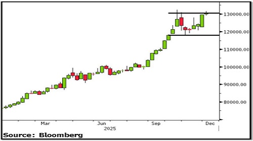 MCX Gold ended the week on a positive note, extending its upward momentum and inching closer to fresh record highs. The metal has staged a strong recovery after the recent sharp decline, forming a clear sequence of higher highs and higher lows on the chart. A sustained move above Rs 1,31,600 would signal renewed upside strength and could pave the way for Rs 1,35,000 and Rs 1,37,000 in the near term. Strong support is placed at Rs 1,24,000, and a decisive break below this zone would confirm a trend reversal.