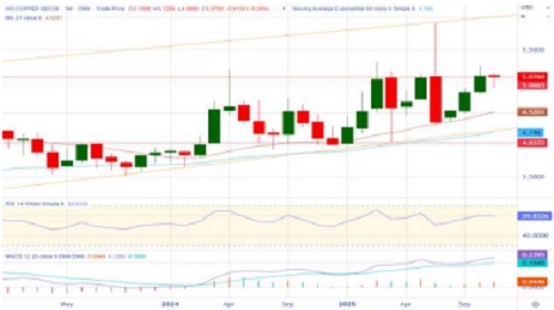 COMEX Copper: The MACD lines have show a bullish divergence, while the RSI remains in neutral territory, indicating potential upside in the coming month. However, a sharp decline below the $4.50/llb level, accompanied by heavy volume, could signal weakness ahead.