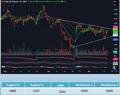 Overall the trend in crude oil remains Sideways towards expiry and Crude oil price may trade in the broad range of 5150-5350