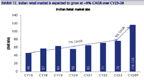 Growth longevity enabled by large TAM…: The Indian retail market was valued at INR 76trln in CY23 with VMM catering to ~50% of this market. Within this, the organised market is expected to grow at a faster clip led by rising brand awareness, focus on better quality products and store expansion by organised retailers. Tier 2 towns account for ~74% of India’s retail spends and are dominated by unorganised retailers. Given VMM’s highly saliency towards Tier 2 towns and its strong track record of operating in this space, we believe it is well placed to ride this huge opportunity.