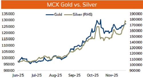 * Spot Gold is likely to trade with the positive bias and rise towards $4250 level on weak dollar and softening of US treasury yields. Further, prices may rally amid growing probability of December rate cut. As per CME FedWatch tool traders are now pricing almost 89% chance of a rate cut in December, up from 84% a week ago. Moreover, prices may rally on strong central bank demand for gold and as the concern over Fed independence resurfaced after White House National Economic Council Director Kevin Hassett emerged as the front-runner to serve as the next Fed chair. Hassett's nomination would be bearish for the dollar as he is seen as the most dovish candidate.