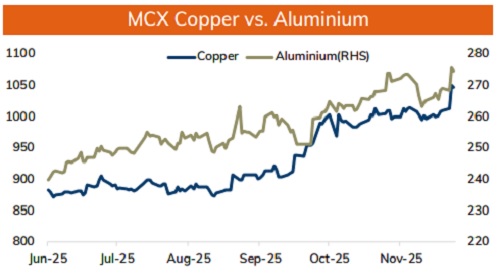 * MCX Aluminum Dec is expected to rise towards Rs.277.50 level as long as it stays above Rs.273 level. MCX Zinc Nov is likely to move in the wide range of Rs.305 level and Rs.310 level. Only below Rs.305 it would turn weaker towards Rs.300