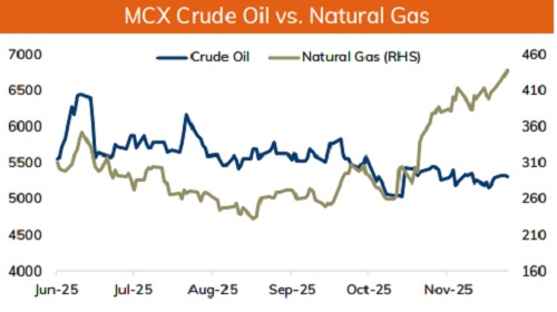 * Crude oil is likely to hold support near $58 per barrel and move higher towards $60 on escalating geopolitical risks. Further, delay in peace deal between Russia and Ukraine could hurt oil supplies from Russia. Recent discussion between Russia and US on the peace deal has been ended with no positive outcome. Further, tension between US and Venezuela could also hurt global supplies. Meanwhile, rise in API crude oil and fuel inventories could restrict its upside. Moreover, investors will also eye on US weekly inventory data to get further clarity on price direction.