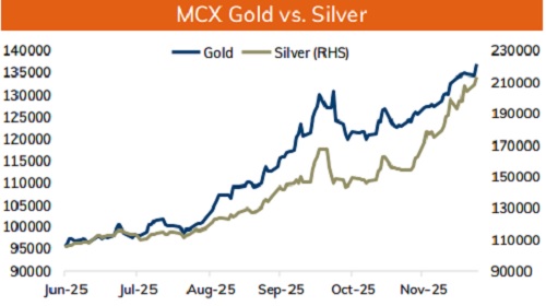 * Spot Gold is expected to trade higher and move towards $4500 per ounce on weaker dollar and growing prospects of more rate cuts from US Federal Reserve. As per the CME Few-watch tool March rate cut probability has gone above 45%, whereas January rate cut probability held near 20%. Further, expectation of moderation in US GDP numbers and sluggish growth in US labor market would force Fed members to support loose monetary policy. For the day, spot gold is likely to hold support at $4430 and move higher towards $4500 per ounce. Only a move above $4500 per ounce it would rise towards $4550 per ounce.