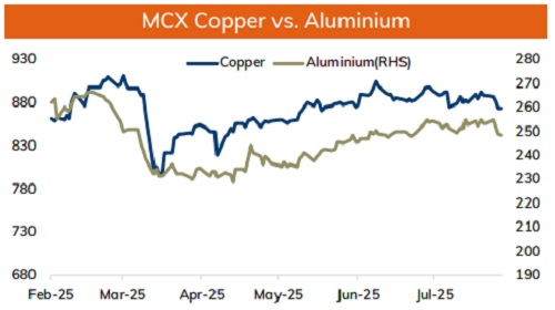 * MCX Aluminum August is expected to trade lower on improving supply scenario and muted demand. Price may slide towards Rs.246, as long as it trades under Rs.251 level. MCX Zinc August is likely to slip towards Rs.263 level as long as it stays below Rs.268 level.