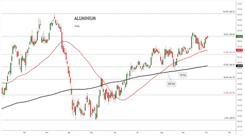Aluminium gains supported by both supply concerns and strong demand as operating rates improve.