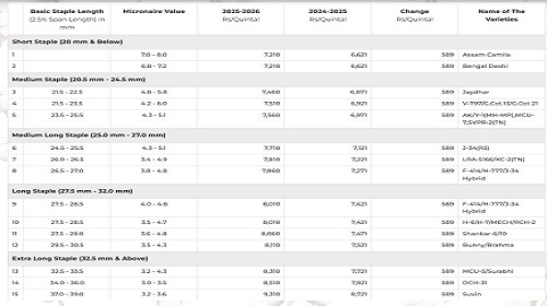 * The Indian government has increased the MSP for cotton for the 2025-26 season by up to 11.84%.