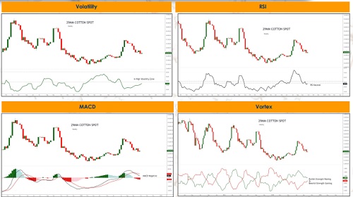 Global Factors: World ending stocks are projected at 73.1 million bales, lowest in four years. US and Australia show supply declines, while Brazil & Argentina post gains. China’s imports are slowing, adding demand-side pressure. Weak textile demand and synthetics remain downside risks.