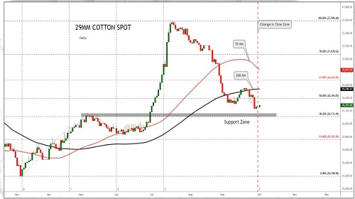 * Spot Cotton 29mm dropped around 1.35% to 29270 in Sept as trade remained sluggish amid concerns over the US-imposed tariff and penalty on Indian exports.
